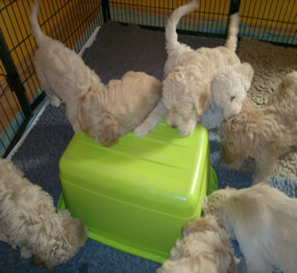 Es ist unglaublich wie schnell sich die Kleinen entwickeln und jeden Tag etwas Neues gelernt haben. Das hat uns als Züchter erneut bewusst gemacht, wie wichtig diese Zeit in ihrem 1. Zuhause, auf dem Weg zu einem gut sozialisierten, erwachsenen Hund ist!