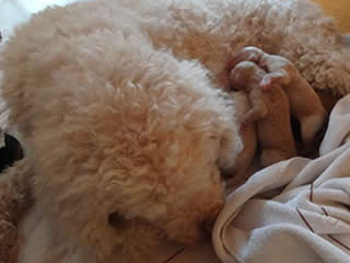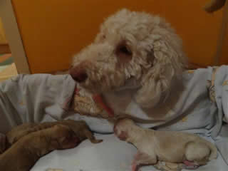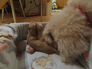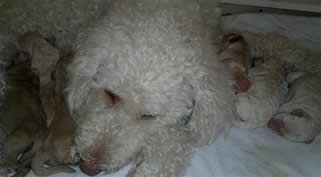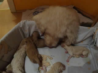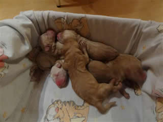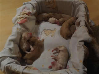 Am 18. April 2012, bekam unsere Sunny, unter engagierter Mithilfe von Angela und Brigitte als "Hebammen", 8 gesunde und starke Welpen!!!