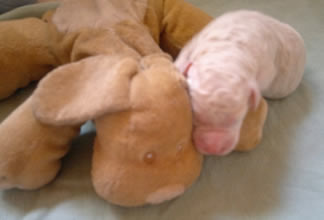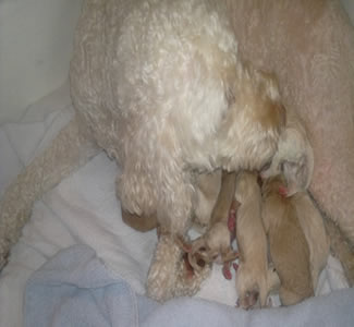 Wie bereits bei Sunny's erstem Wurf, war Angela Verkoelen, trotz früher Morgenstunde mit Rat und Tat, während der Geburt zur Stelle. Vielen Dank!