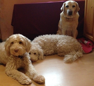 Seit einigen Jahren züchtet Cymbrogi keine Labrador-Retriever mehr, sondern allergiefreundliche Australian Labradoodle (sprich Labradudel). Als wir nun diese für uns neue Hunderasse kennenlernten, waren wir sofort von diesen energiegeladenen, gutgelaunten und doch so sanften und verschmusten Tieren völlig begeistert. Mittlerweile sind wir mit Angela und Pako von Cymbrogi-Labradoodles eng befreundet.